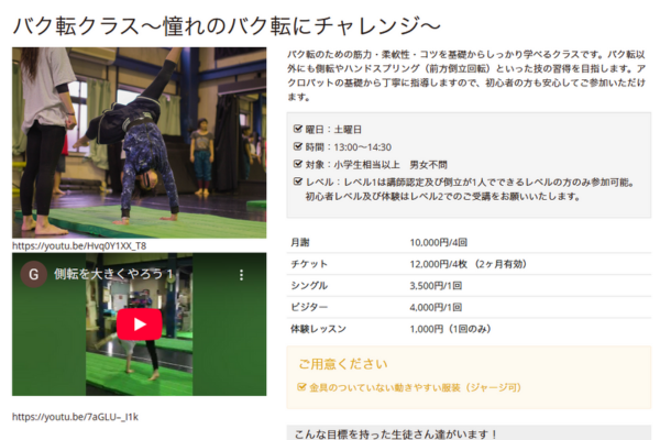 東京都葛飾区のアクロバット・バク転教室様から、スマホ対応やデザイン刷新、自分たちで更新しやすいホームページへのリニューアルをご相談いただきました。情報を整理し、講師の実績が伝わる構成に見直した結果、本格的なレッスンを求めている生徒さんからのお問い合わせが10倍以上に増加しました。