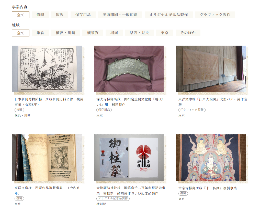 修理・複製・保存用品・印刷・展示グラフィック制作など、幅広い文化事業を展開されています。