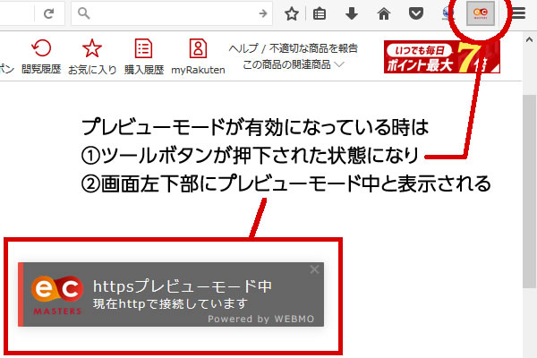 HTTPS化対応状況を確認したいURLを表示して<httpsプレビューモード>に切り替えるだけで、状況を確認することができます。