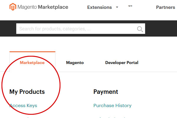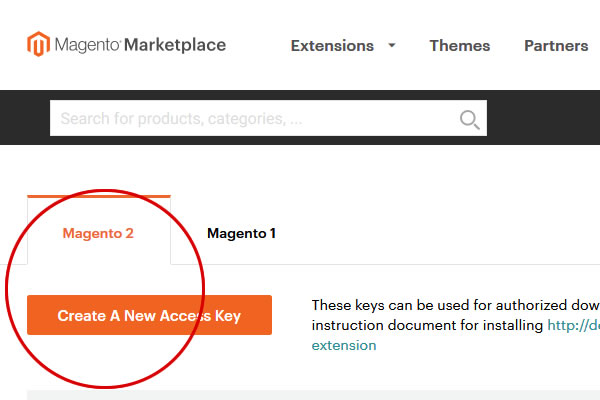 [Magento 2]タブを選択し<Create A New Access Key>をクリック