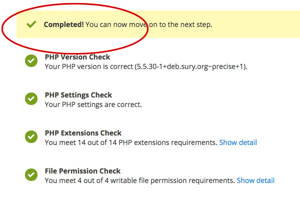 問題が表示されたら修正し、すべての条件を満たすと「Completed! you can now move on to the next step.」と表示されます。