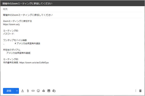 ミーティングに招待されると、メールやSNSで、ミーティングに参加するために必要な情報が届きます。