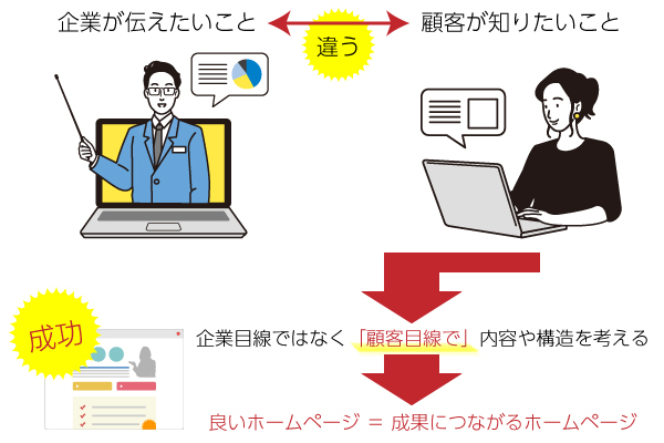 企業サイト・コーポレートサイトを立ち上げる目的は、成果をあげることにあると思います。つまり企業にとって良いホームページとは、「成果につながるホームページ」でしょう。