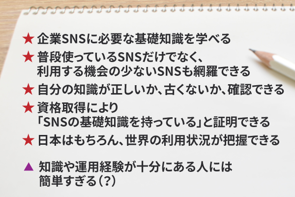 - 資格取得により「SNSの基礎知識を持っている」と証明できる