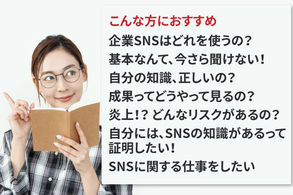 SNS担当者や、企業SNSを導入しようと考えている方、SNSコンサルタントを目指す方などにおすすめです。
