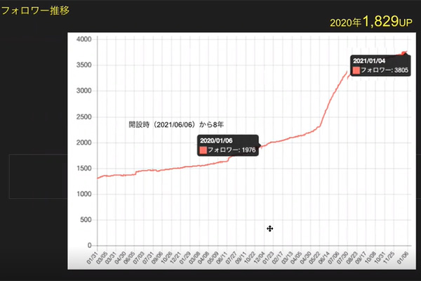 私が担当した時点で、Twitter開設からだいたい8年が経過、フォロワー数は1,976でした。1年経過して現在は3,805。約2倍、8年分を1年で集めた計算になります。