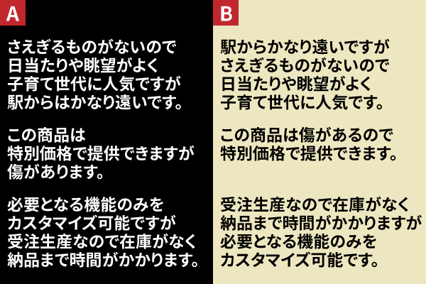 AとB、まったく同じ内容ですが、どちらのほうが好印象でしょうか?