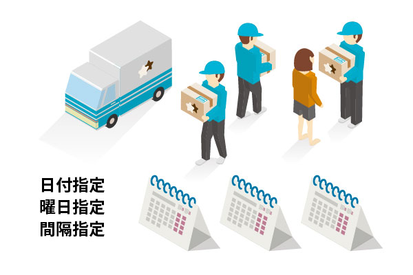ネットショップで同じ商品を購入するのは意外に大変な作業です。他の店舗で購入されてしまうかもしれません。買い忘れてしまうこともあるでしょう。「定期購入」という購入者にとって便利な機能を導入することで利便性を向上し、買い忘れを防止、リピート率をアップしましょう。初回のみお試し価格に設定することもできますし、定期購入ではなく、通常の購入ボタンを設置することもできます。受け取る期間を、日付・曜日・間隔(〇日ごとなど)で指定することもできます。注文・配送処理も簡単です。何回目のお届けなのか確認することも可能です。