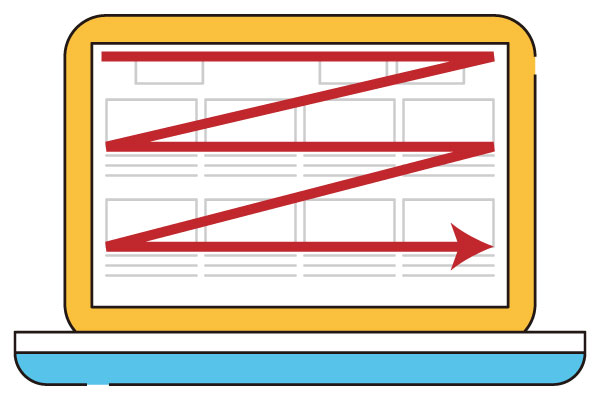 画面の左上から右上に向かって水平方向に情報をチェックした後、左下に戻り、そこからまた水平方向に情報を確認していくレイアウトパターンです。視線が「Z」という文字を描くように動くよう誘導することから、Z型と呼ばれます。