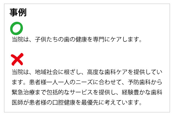 文章をできるだけ短く保ち、冗長な表現を避けます。ひとつの文章を60文字以内におさめ、ひとつの情報のみを入れることを目指すとよいでしょう。冒頭は主題から書き始め、不要な修飾語や副詞を削減し、修飾語と被修飾語を近づけて文章を作成するようにすれば、よりよい理解が得られます。
