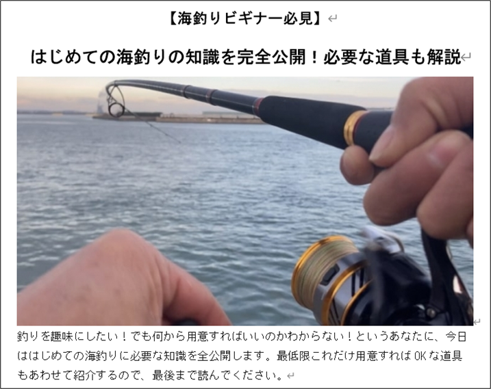 例えば、「海釣り」に関するコンテンツをつくるとします。
