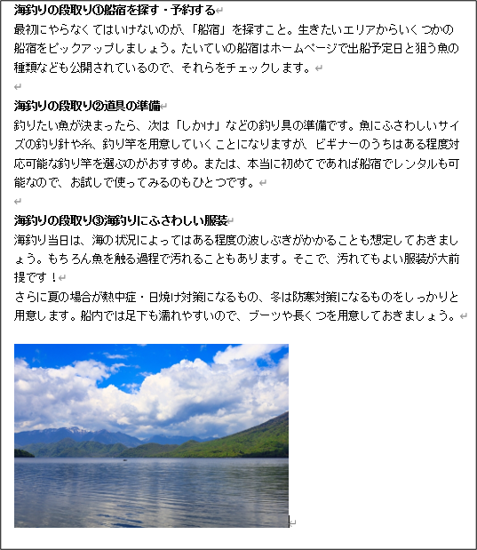 その際、「海」「船」「釣り具」「魚」あたりが真っ先に浮かぶと思われますので、これらを表す画像を選ぶことになります。