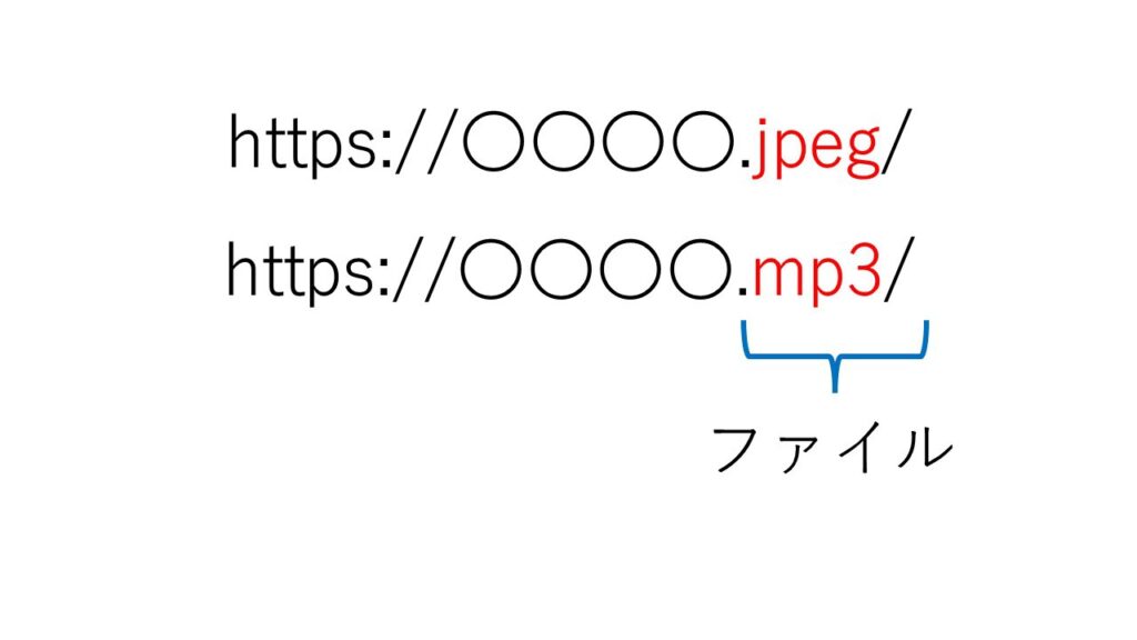 「ファイル」は最終的に表示されるページファイルで、ホームページアドレスではディレクトリの右側の部分、末尾に当たる文字列が該当します。