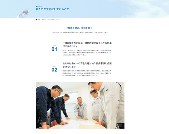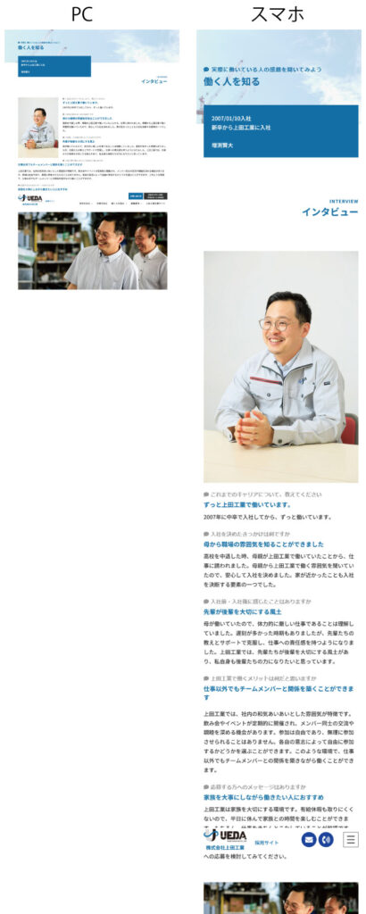 ※弊社作成 株式会社 上田工業様 採用サイトより https://ueda-ind.co.jp/recruit/(以下事例画像、すべて同じ)