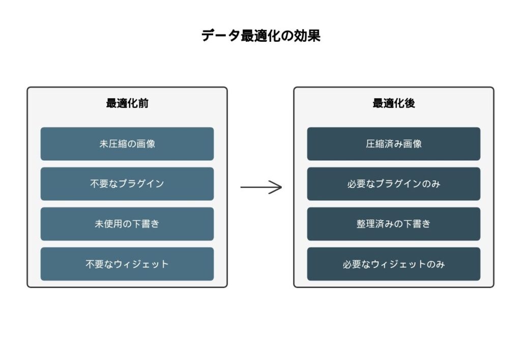 サイトが重くなる原因としてまず考えられるのが、不要なデータの蓄積です。