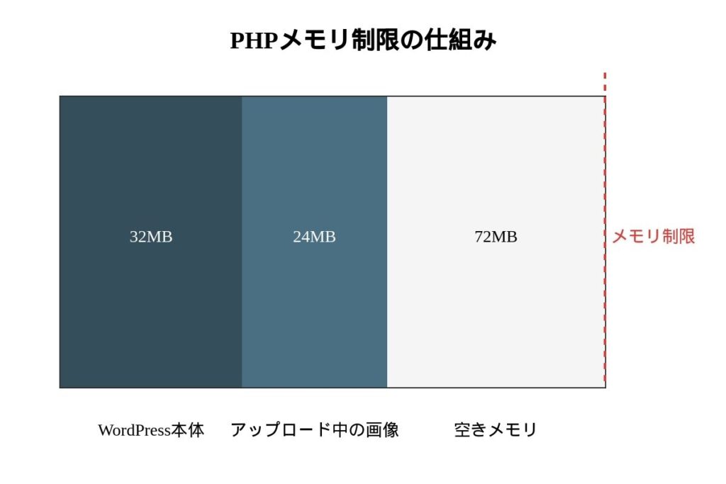 PHPは画像データを一時的にメモリ上に展開するためメモリがない場合、画像アップロードが止まってしまうことがあります。PHPメモリ制限を確認しましょう。