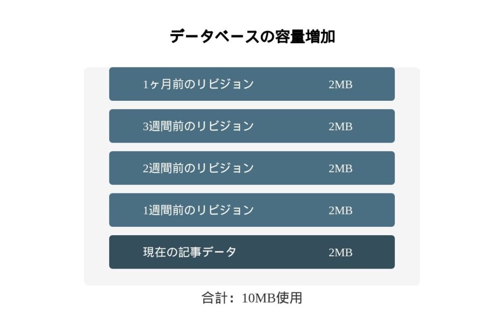 具体的には「リビジョン」の削除などがあげられます。リビジョンはWord Pressにある自動下書き機能で、記事を過去の下書きから復元したい時などに便利です。