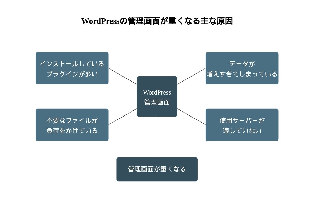 WordPressに含まれている多くのファイルが増えすぎてしまうことで管理画面が重くなるというケースもあります。