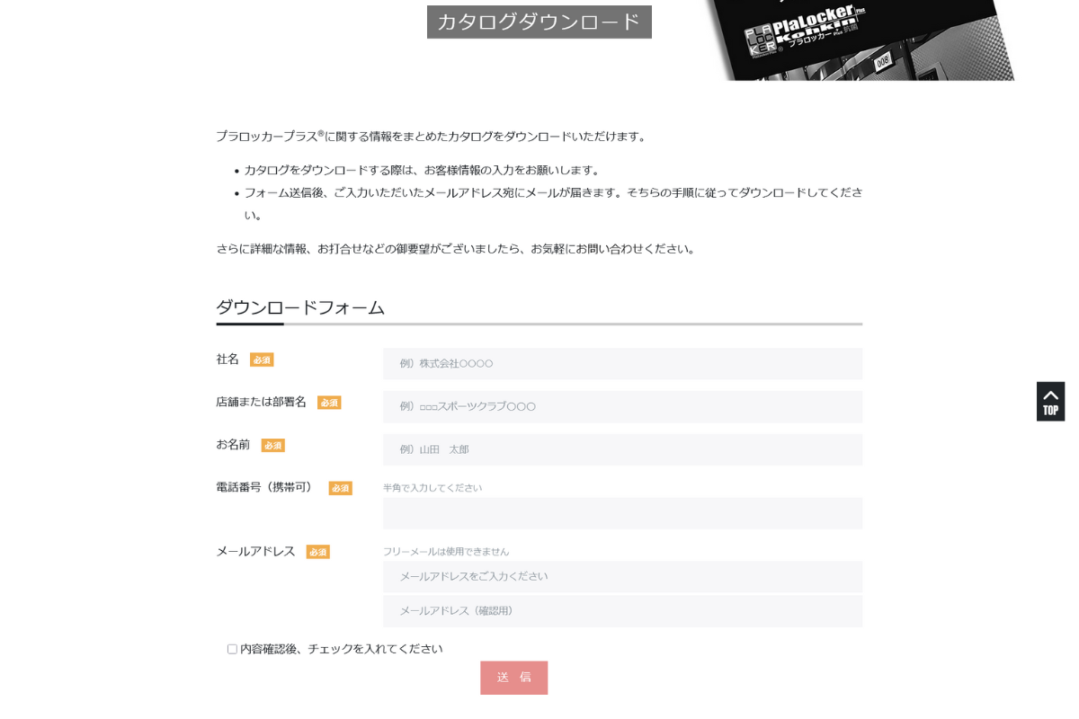 検討度合いの高いユーザーを逃さないよう、サイトからカタログをダウンロードできるようにしました。