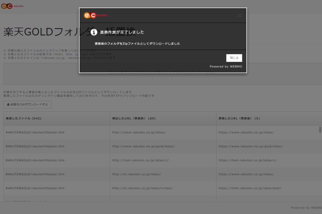 楽天ショップ専用HTTPS化対応ツール」の「HTTP確認HTTPS置換君」に、楽天GOLD一括置換機能を実装しました。楽天GOLDからダウンロードしてきたフォルダを丸ごとドラッグ&ドロップするだけで一括置換完了!一覧で確認&置換結果をCSVダウンロードできますのでどこが置換されたのかが一目瞭然。ぜひご活用ください。